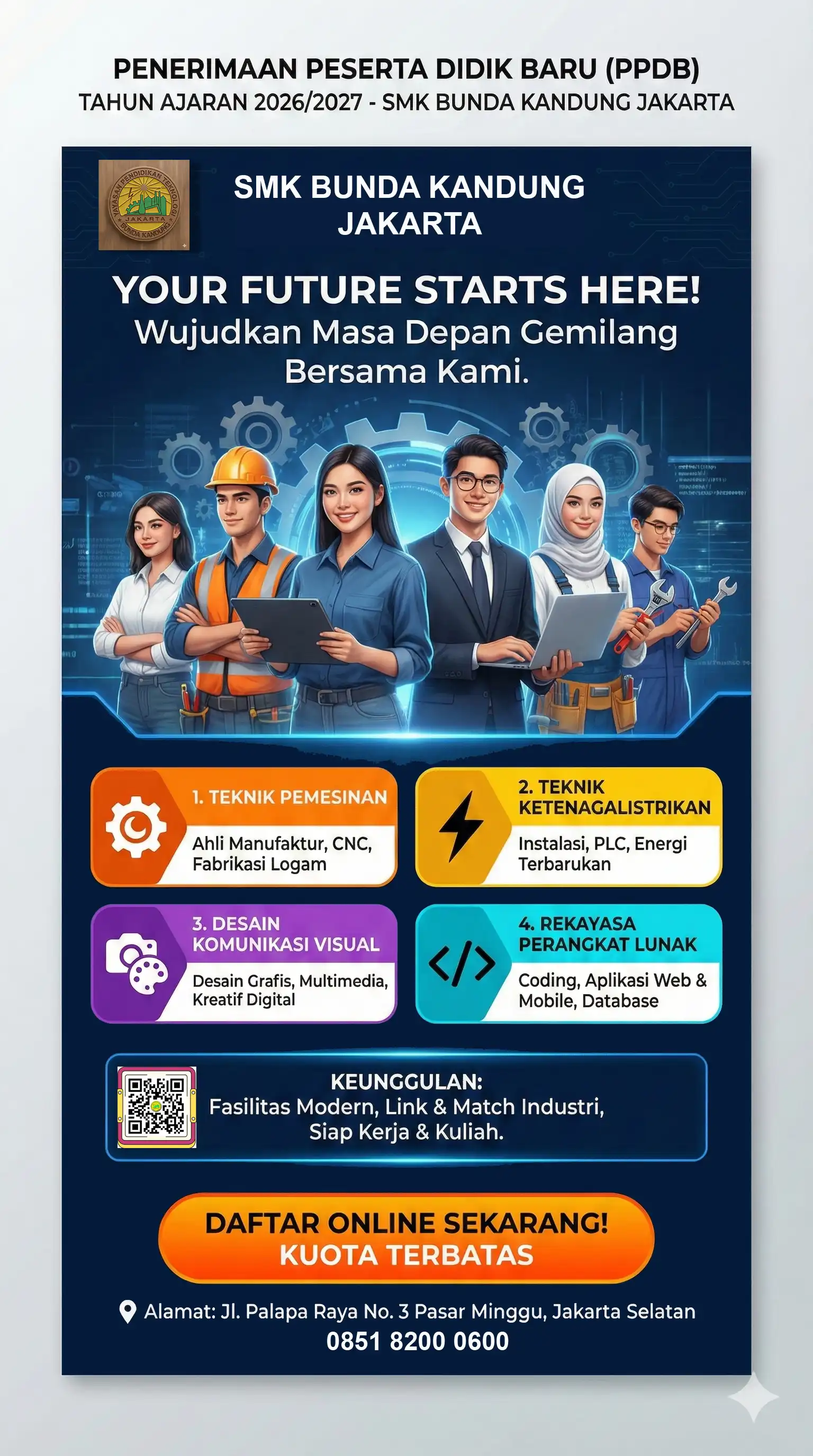 • Mari bergabung bersama kami di SMK Bunda Kandung Jakarta dan raih masa depan yang gemilang!