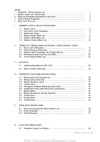 i. Pengertian / Definisi tentang Las ........................................................................ 1