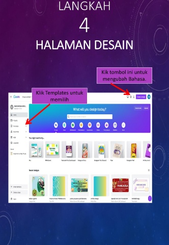 LANGKAH 4 HALAMAN DESAIN Kik tombol ini untuk mengubah Bahasa. Klik Templates untuk memilih